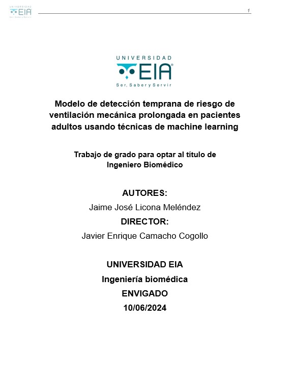 Publicación: Modelo de detección temprana de riesgo de ventilación mecánica prolongada en pacientes adultos usando técnicas de machine learning