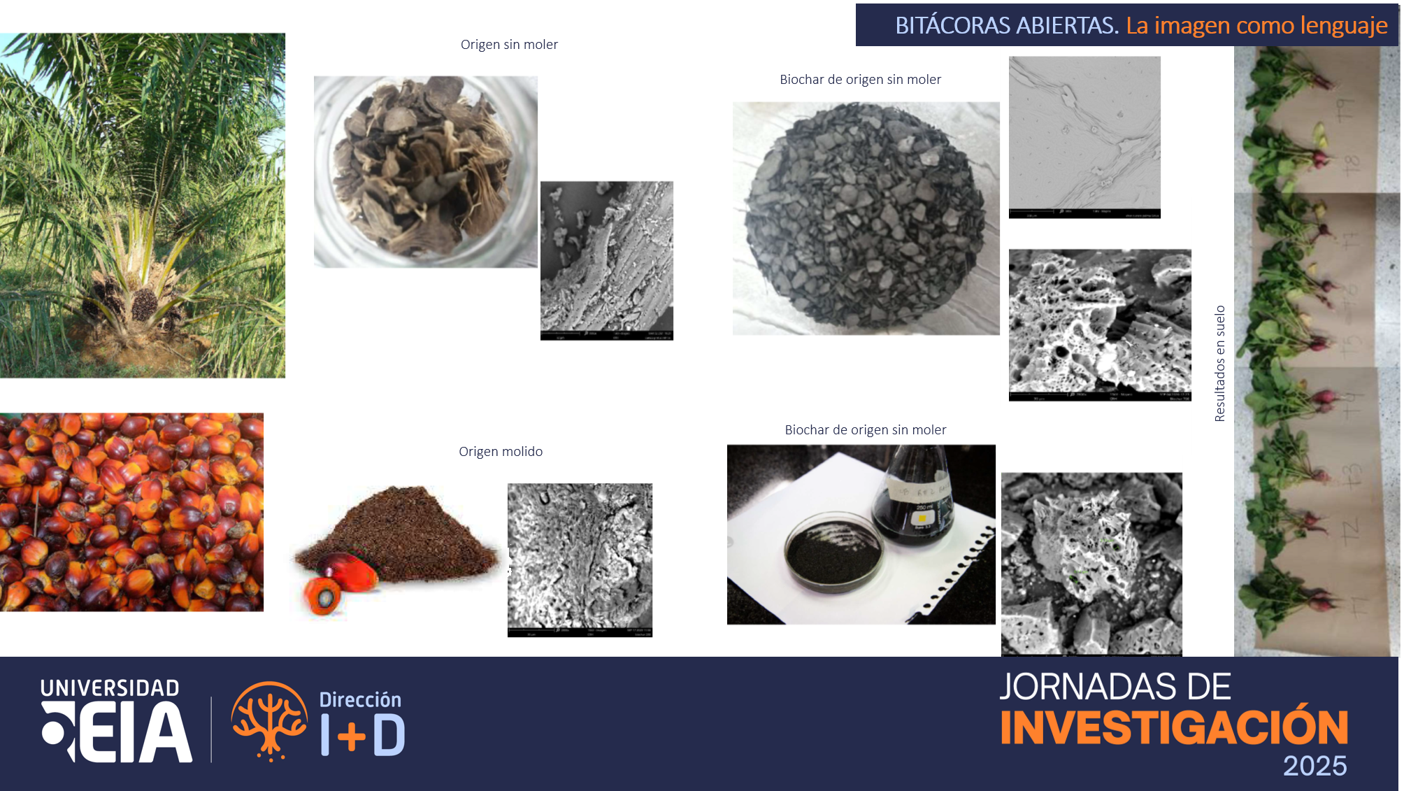 En la actualidad, la agroindustria afronta varios retos a escala ambiental, de un lado la necesidad de desarrollar estrategias de economía circular para la transformación y aprovechamiento de los residuos agroindustriales y de otro, luchar contra la creciente pérdida de fertilidad de los suelos por su sobre explotación, así como abastecer el creciente consumo energético. Estos problemas ambientales fueron considerados en un proyecto de investigación con intereses regionales, el cual consistió en emplear desechos del cultivo de la palma de aceite generados en el Urabá antioqueño, para la producción de energía por vías termoquímicas, donde uno de los principales subproductos es el denominado biocarbón. Este subproducto mostró tener buenos resultados para mejorar las características físicas y químicas del suelo (Zhogmin et al, 2017; Lijian et al, 2019; Gatachew et al, 2016), lo cual puede impulsar la economía circular de la zona donde se generan los residuos; además de ser un mecanismo potencial de captura y retención del carbono en el suelo como una medida de descarbonización global.